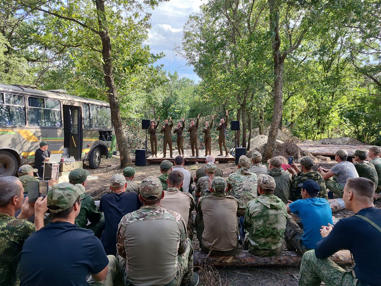 Как рассказали сами артисты, концерты проходили прямо на территории дислокации в ЛНР. Программа была представлена как уже ставшими классическими произведениями отечественной музыки, так и современными хитами российской эстрады. Артистов бойцы встретили очень тепло. Военнослужащие не только подпевали исполнителям, но и танцевали в такт.